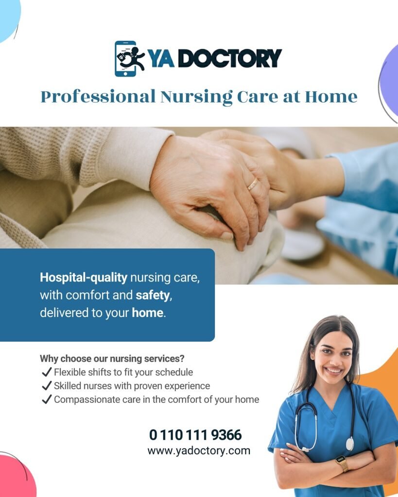 At Ya Doctory, we understand that some patients need continuous medical attention and support without the stress of hospital stays. That’s why we offer professional nursing care at home in Egypt, designed to bring hospital-quality care to the comfort and privacy of your home.